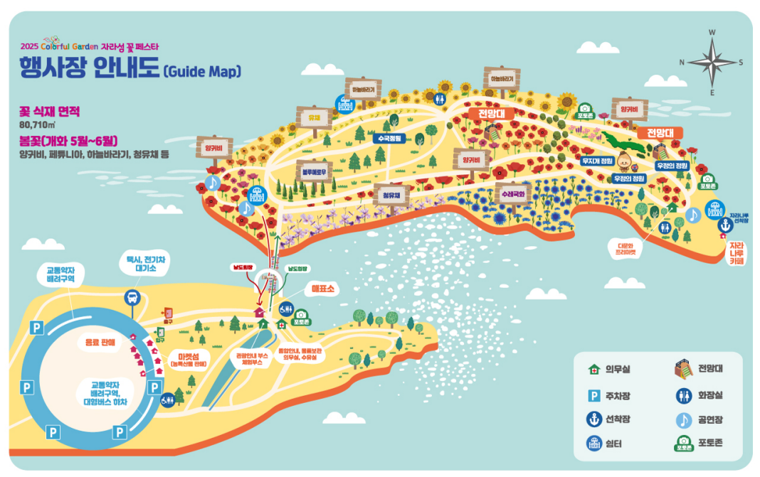 ※ 본 정보는 2025년 자라섬 꽃 페스타의 예상 정보이며, 실제 행사 내용과 차이가 있을 수 있습니다. 정확한 정보는 방문 전 자라섬 꽃 페스타 공식 홈페이지를 확인해주세요.
