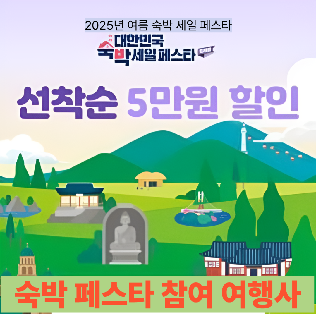 본격적인 여름 휴가철을 앞두고, 5월 28일 부터 문화체육관광부(문체부)와 한국관광공사(공사)가 야심 차게 준비한 "2025 대한민국 여름맞이 숙박세일페스타"가 시작됩니다! 국내 여행을 장려하고 지역 경제에 활력을 불어넣기 위한 이번 행사를 통해 총 40만 장의 5만원 숙박할인권이 배포될 예정이니, 놓치지 마세요!