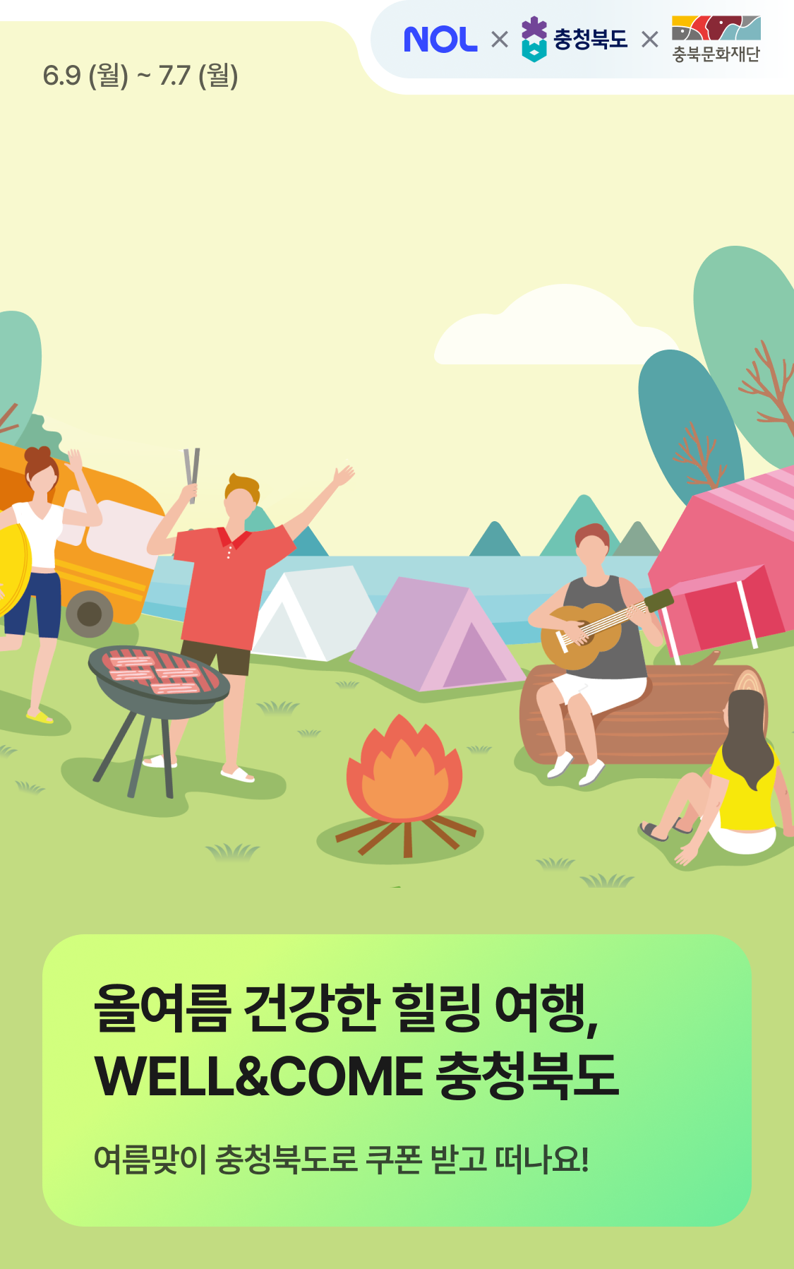 충청북도 여행을 계획 중이신가요? 2025년 여름, 충청북도와 야놀자 NOL이 함께하는 WELL&COME 충북 숙박 프로모션으로 최대 5만원까지 할인구폰을 받을수 있는 찬스, 지금 바로 소개합니다.