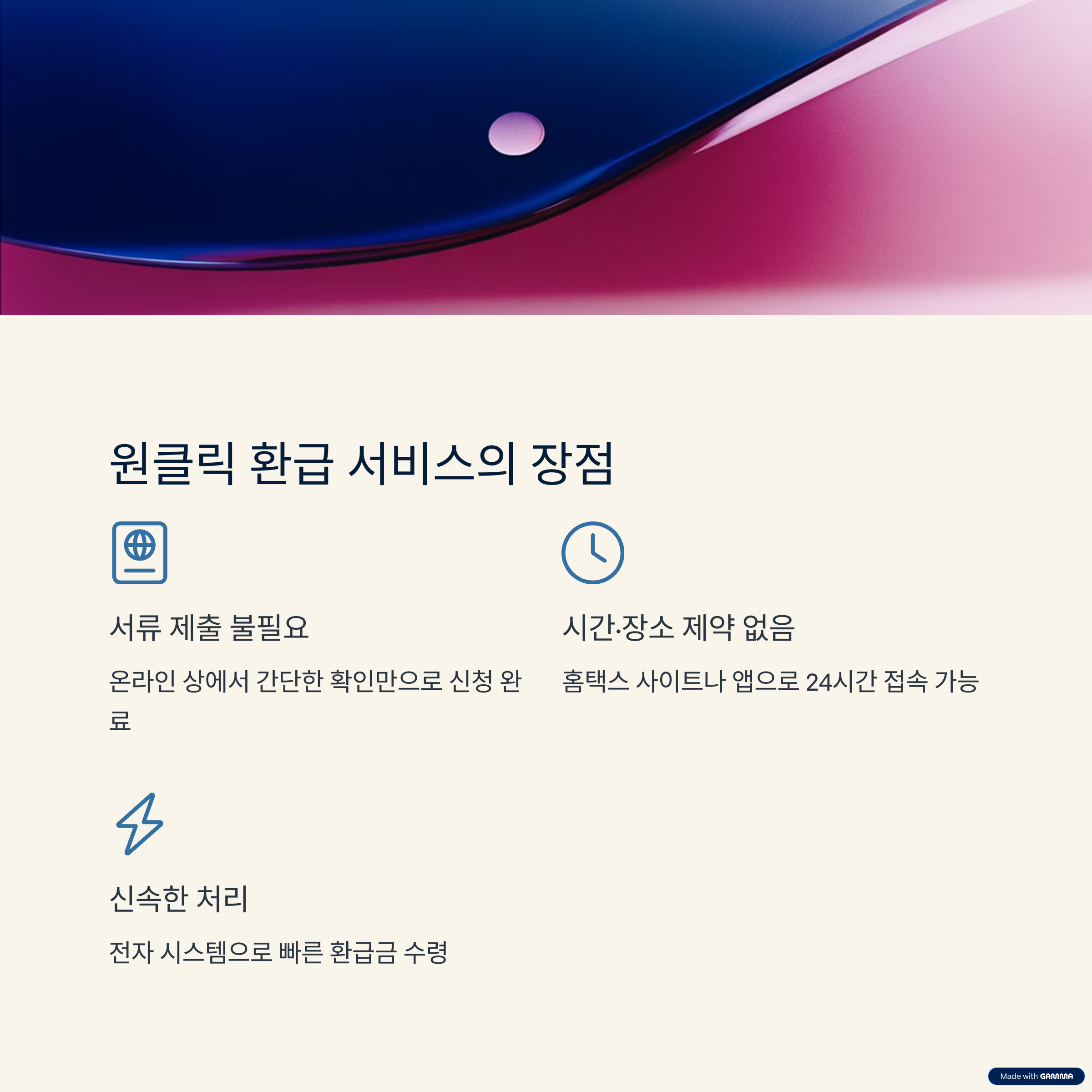셋째, 신속한 처리가 가능하다. 전자적 처리 시스템을 통해 환급 신청이 즉시 처리되므로, 기존보다 훨씬 빠른 시일 내에 환급금을 수령할 수 있다.