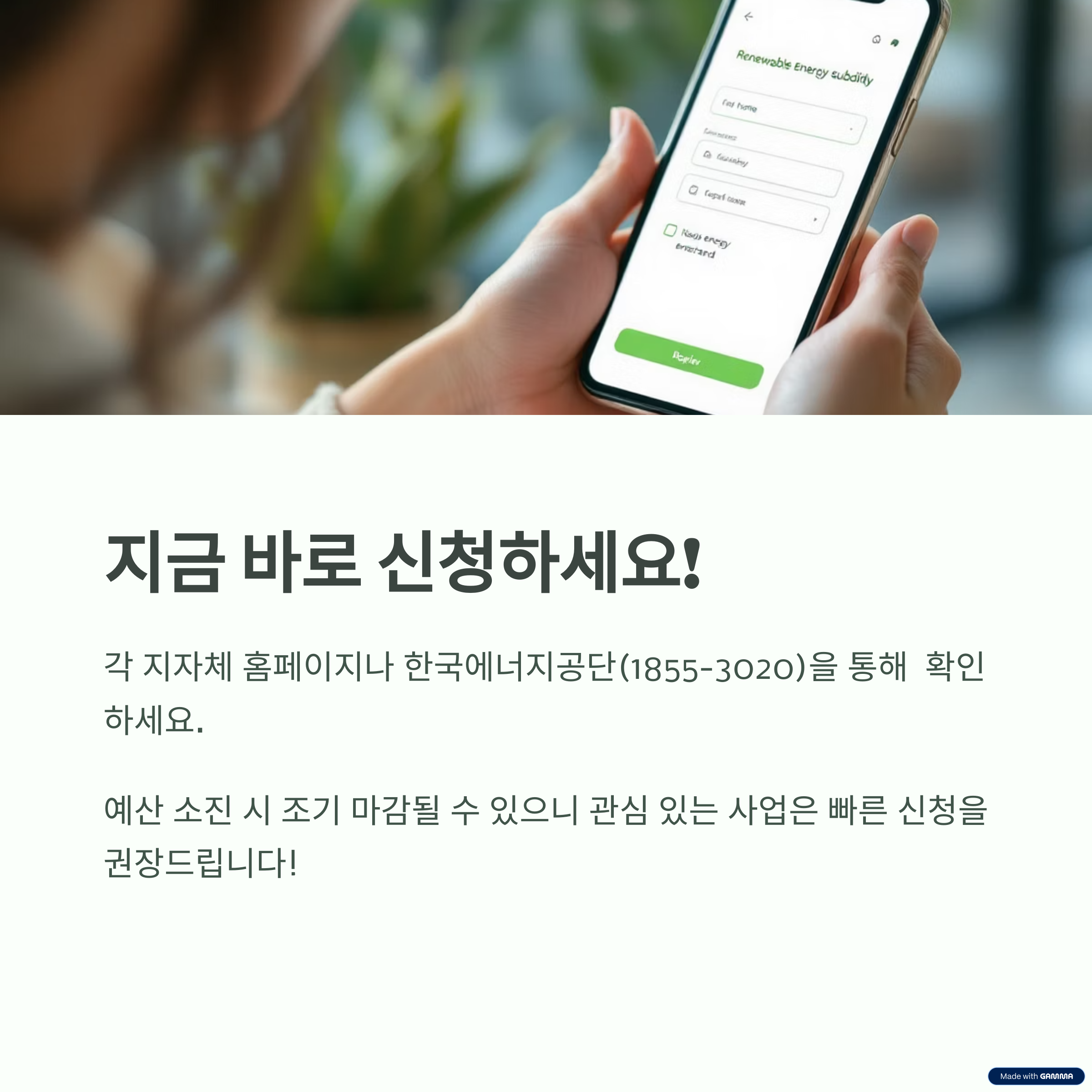 - 문의: 한국에너지공단 신재생에너지센터 (1855-3020)
