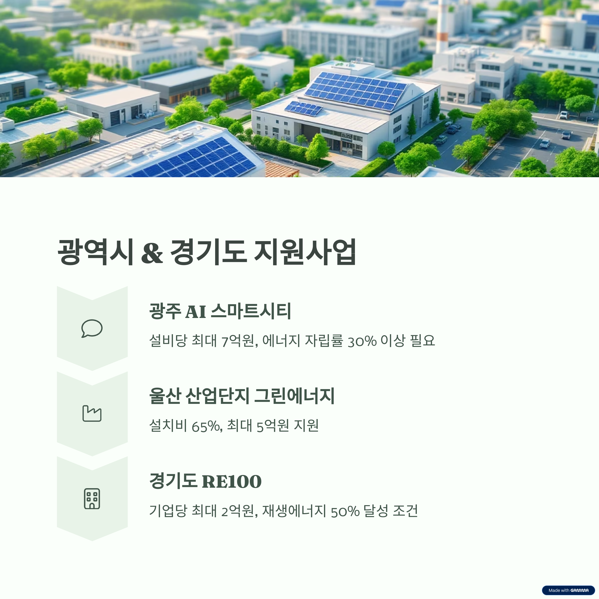 - 지원내용: 태양광, 바이오매스 등 신재생에너지 설비 구축