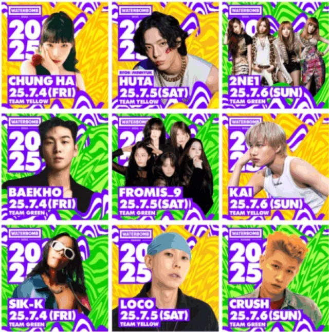 - 7월 6일(일): 2NE1(완전체), 카이, 크러쉬, KISS OF LIFE, 권은비, 그레이, PH-1, ASH ISLAND 등